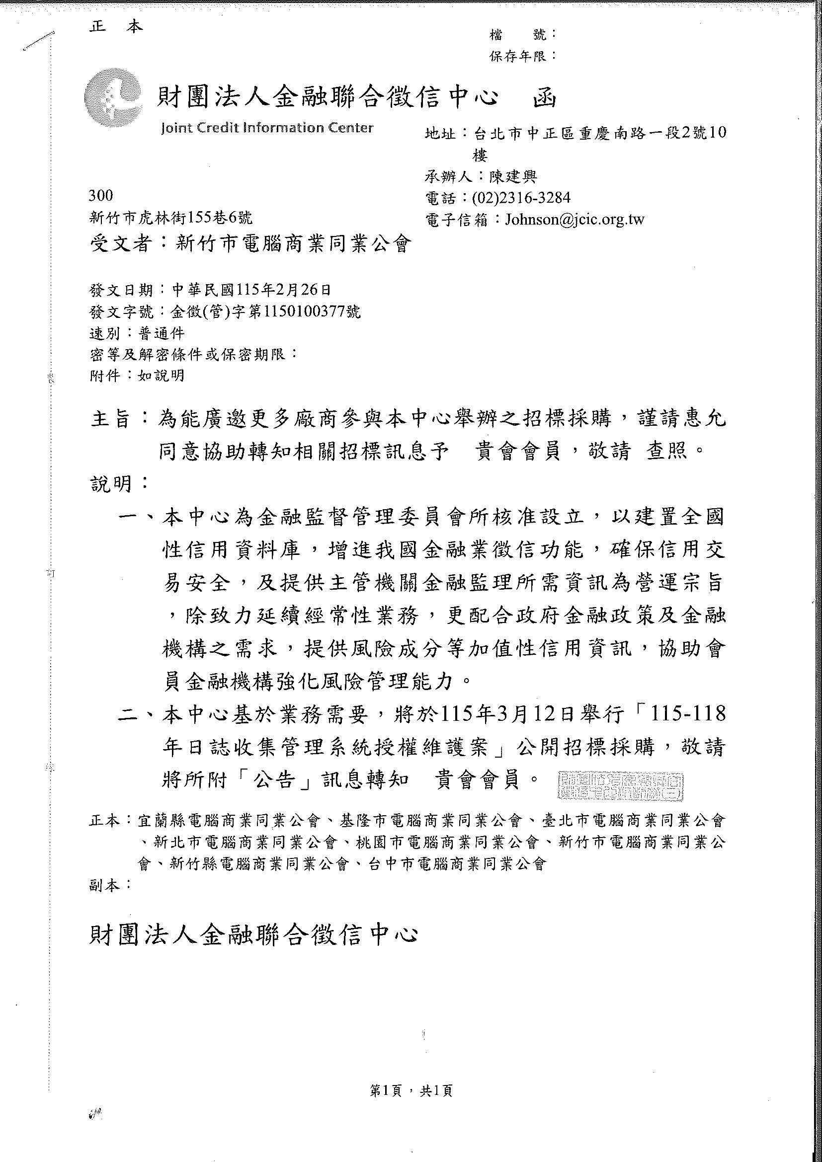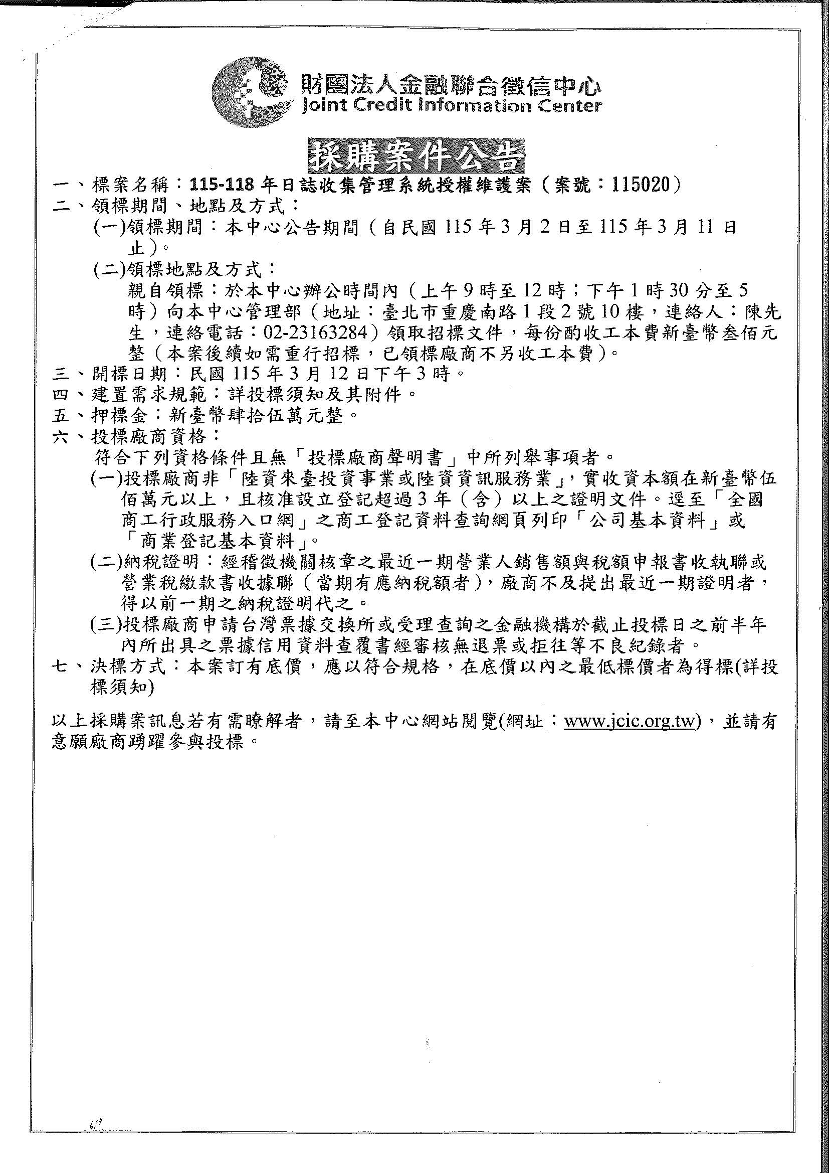 財團法人金融聯合徵信中心 [招標訊息]