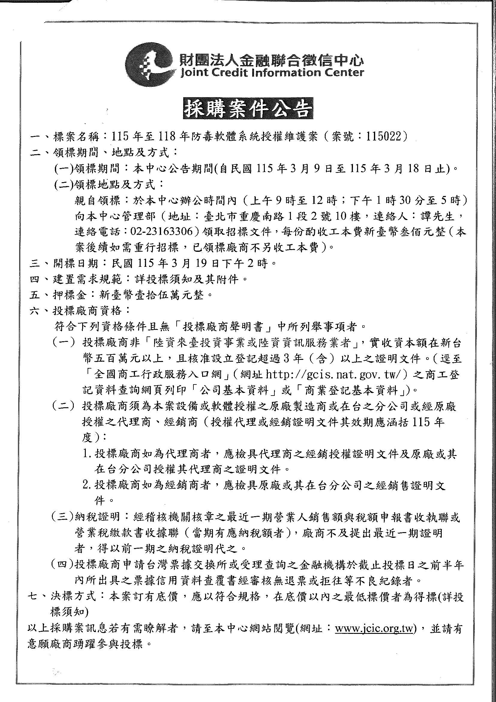 財團法人金融聯合徵信中心 [招標訊息]