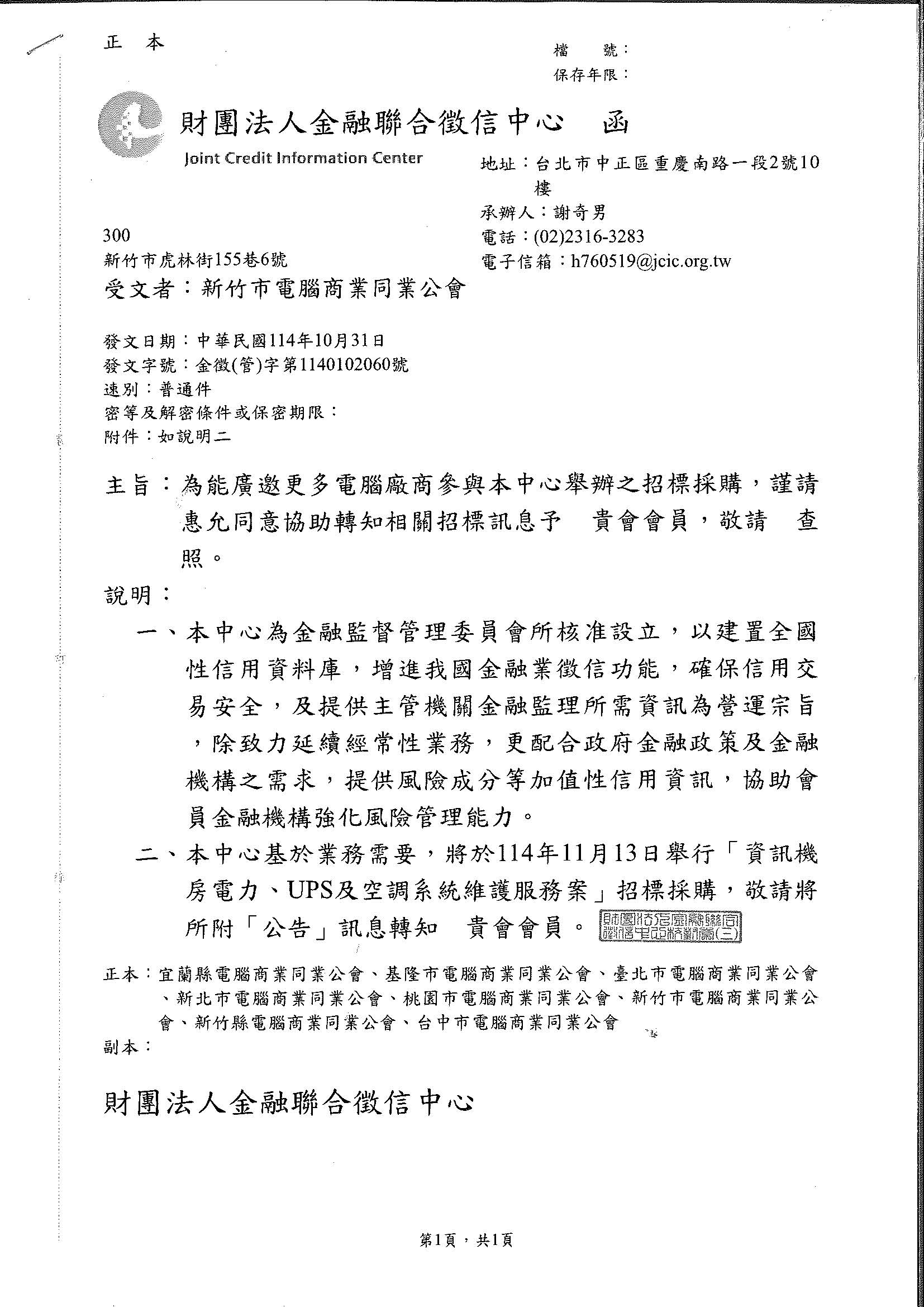 財團法人金融聯合徵信中心 [招標訊息]