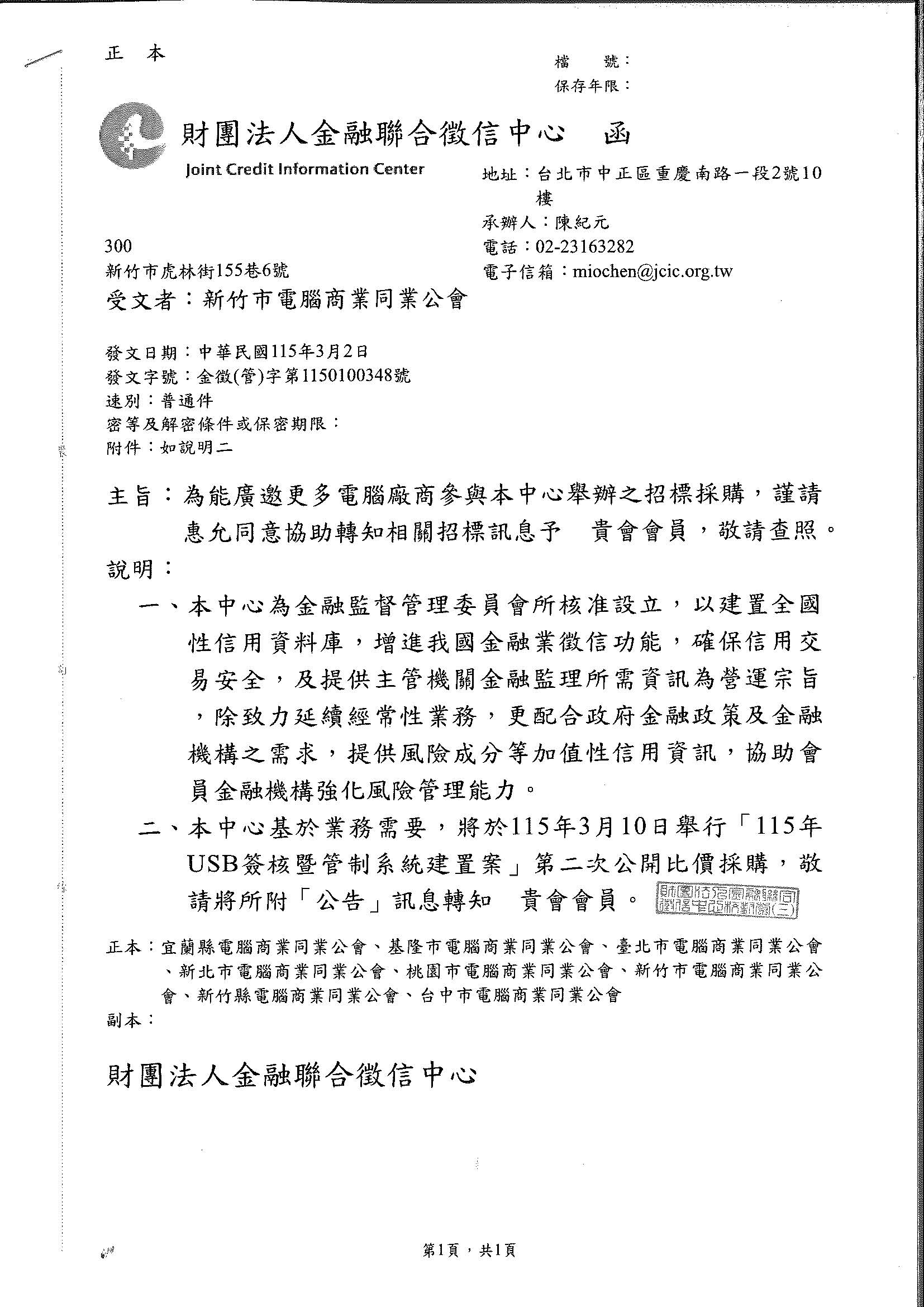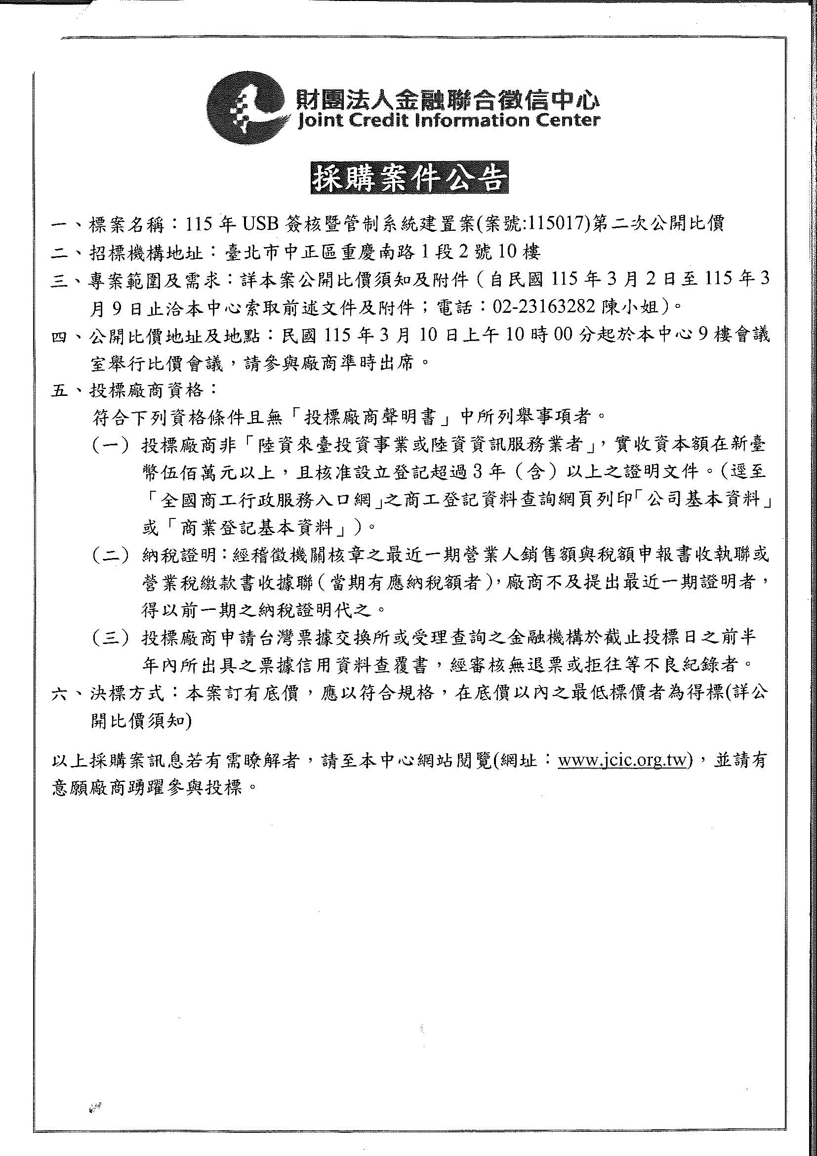 財團法人金融聯合徵信中心 [招標訊息]