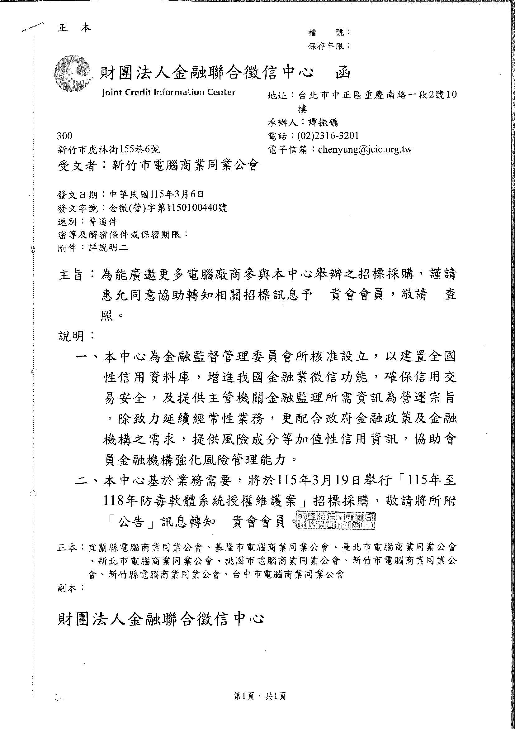 財團法人金融聯合徵信中心 [招標訊息]